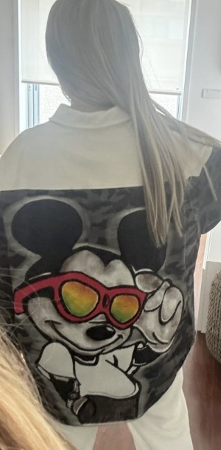 estampa do Mickey nas costas com lantejoulas